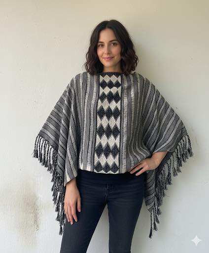 Handmade Telar de Cintura Wool Jorongo for Autumn and Winter
